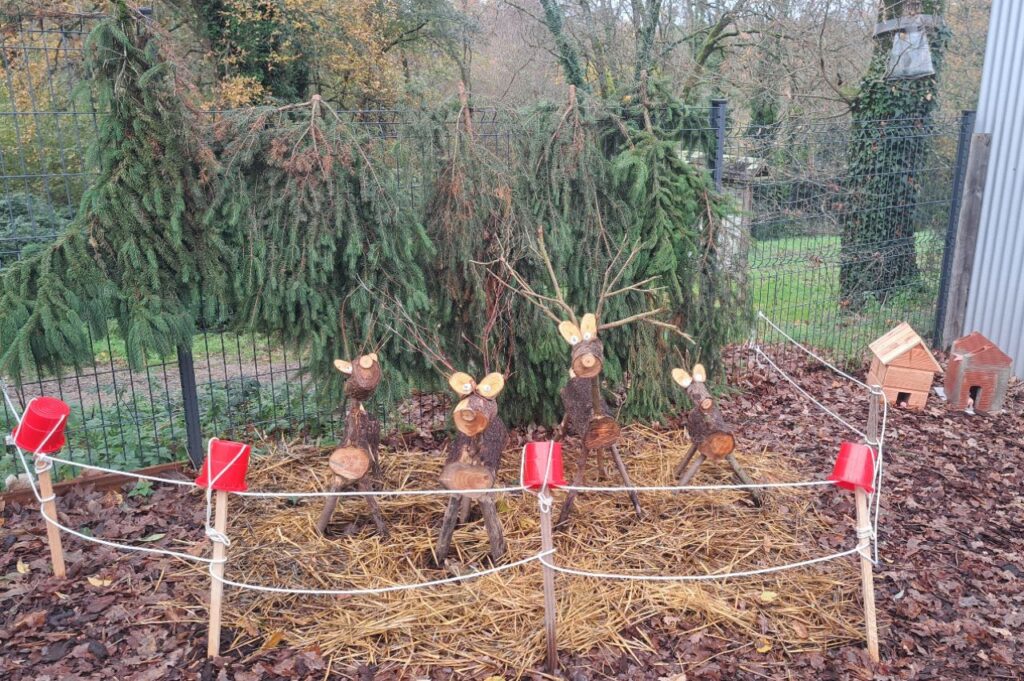 Les rennes sont arrivés, ils se reposent dans la cour de l’école maternelle en attendant le grand jour.